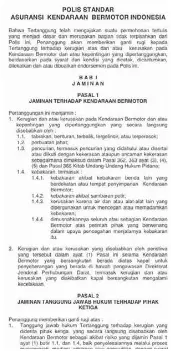 26 Jul 2018 — Syarat dan ketentuan lainnya dalam Polis Standar Asuransi Kendaraan Bermotor Indonesia tetap berlaku dan tidak mengalami perubahan.