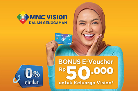 DISKON s/d 40% + MNC PAY 0%. MNC VISION. September 2021. · Hanya berlaku untuk kartu kredit MNC Bank TIPE VISA GOLD & PLATINUM. · Bayar 7 bulan gratis 5 bulan berlaku untuk semua paket MNC Vision kecuali HD dan Multidecoder. · Wajib mengikuti cicilan 0% 12 bulan. · Satu kartu kredit hanya berlaku untuk satu nomor pelanggan MNC Vision.