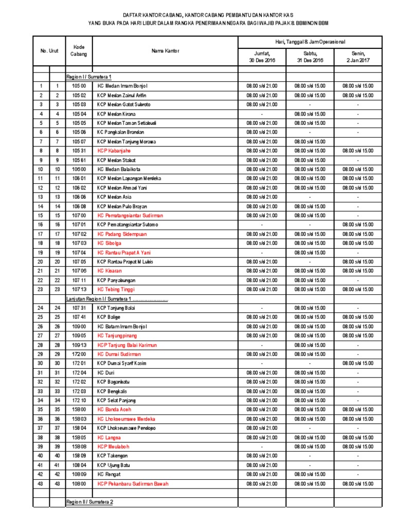Penyesuaian Waktu Operasional Cabang. Dalam rangka meningkatkan kualitas layanan dan memberikan perlindungan. kepada Nasabah, bersama ini kami informasikan penyesuaian jam Layanan. kepada Nasabah di Kantor Cabang Bank Mandiri yaitu pukul 8.00 - 14.30 waktu. setempat berlaku efektif mulai 11 Oktober 2021.