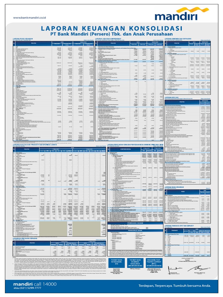 Penyajian Laporan Keuangan Publikasi pada tanggal dan untuk tahun-tahun yang berakhir pada tanggal 31 Desember 2014 dan 2013 di atas telah disusun berdasarkan Laporan Keuangan Konsolidasian PT Bank Mandiri (Persero) Tbk. dan Entitas Anak yang telah diaudit oleh Kantor Akuntan Publik Tanudiredja, Wibisana & Rekan - a member Firm of PwC Global ...