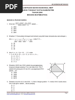 Bank soal matematika smp pdf. Bank soal materi induksi matematika yang kami bagikan ini terdiri dari 29 butir soal meliputi pembuktian deret bilangan pembuktian keterbagian dan pembuktian pertidaksamaan dengan menggunkan induksi matematika. Kumpulan soal matematika smp kelas 7 kumpulan soal mat.