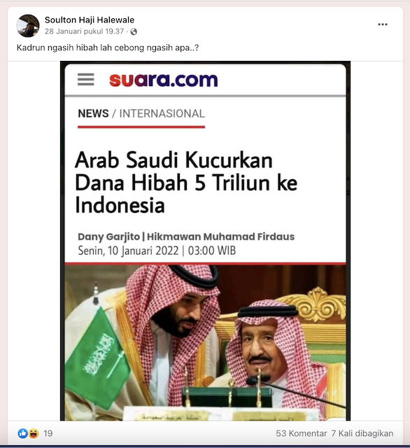 Berikut Cara Mendapatkan Dana Hibah Pariwisata dari Pemerintah Sebesar Rp3,3 Triliun ... Tema Hari Pariwisata Internasional Sejalan dengan Penerapan Protokol Kesehatan Berbasis CHSE. ... Dana hibah yang diberikan kepada pemerintah daerah dibagi dengan imbangan 70 persen dialokasikan untuk bantuan langsung kepada industri hotel dan restoran. Telp. (021) 772674, 712683. Baca juga: Daftar Lembaga Bantuan Instansi Luar Negeri. Bentuk Bantuan Pendanaan dan Mekanisme Penyalurannya. Dana Hibah Pelaku Usaha Tanpa Syarat. Sasaran Dana dari Lembaga Bantuan Hibah. THE ASIA PARTNERSHIP FOR HUMAN DEVELOPMENT. P.O. BOX J124. Hrickfield Hill Sydney NSW 2000 Australia. Jan 01, 2021 · Cara mendapatkan dana hibah untuk modal 2021 untuk kamu yang pernah merasa kesulitan dalam mengembangkan usaha. Bukan karena masalah sumber daya manusia, tetapi karena terbentur oleh problem modal, di mana masalah ini sudah banyak yang mengalami juga. Cara mendapatkan dana hibah internasional. Menurut hukum internasional cara tersebut tidak dibenarkan karena ada larangan untuk menambah wilayah dengan kekerasan pasal 2 ayat 4 piagam ppb. Misalnya aneksasi yang dilakukan israel terhadap wilayah palestina. Beberapa tipe bantuan tersebut adalah sebagai berikut.