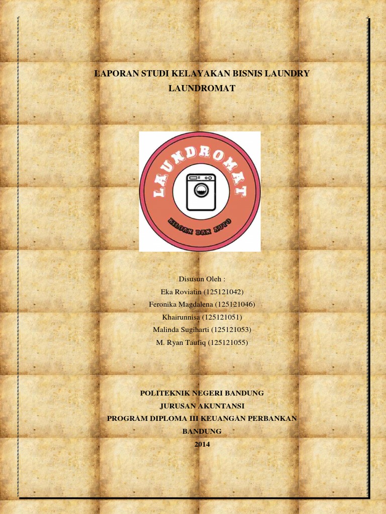 Contoh makalah studi kelayakan bisnis usaha laundry. Yang dimana proposal usaha ini bernama meitasari laundry. Contoh proposal usaha laundry. Laporan keuangan perusahaan jasa laundry sama dengan jenis usaha yang lain. Laundry adalah bentuk usaha jasa yakni jasa mencuci mengeringkan hingga menyetrika pakaian.
