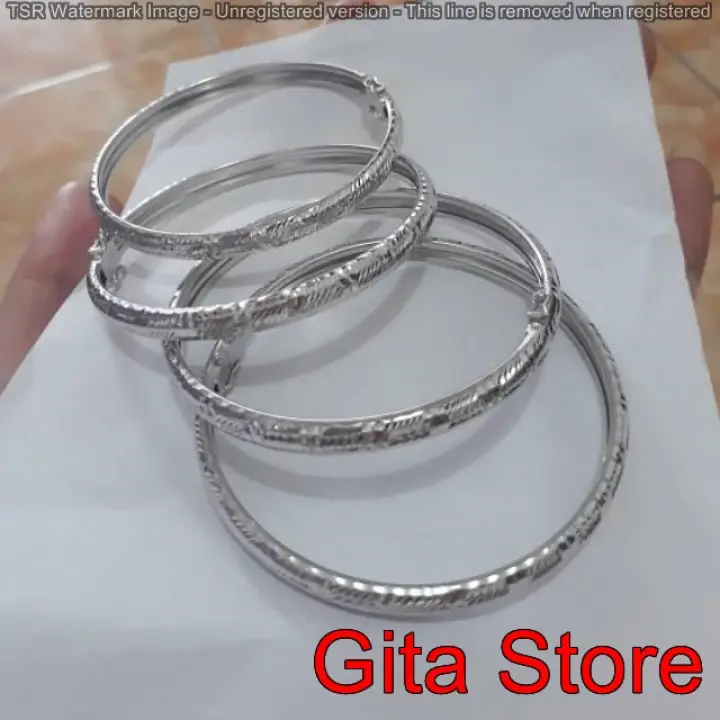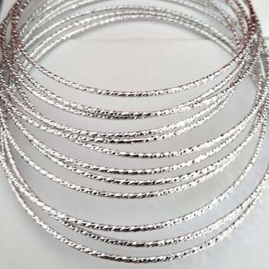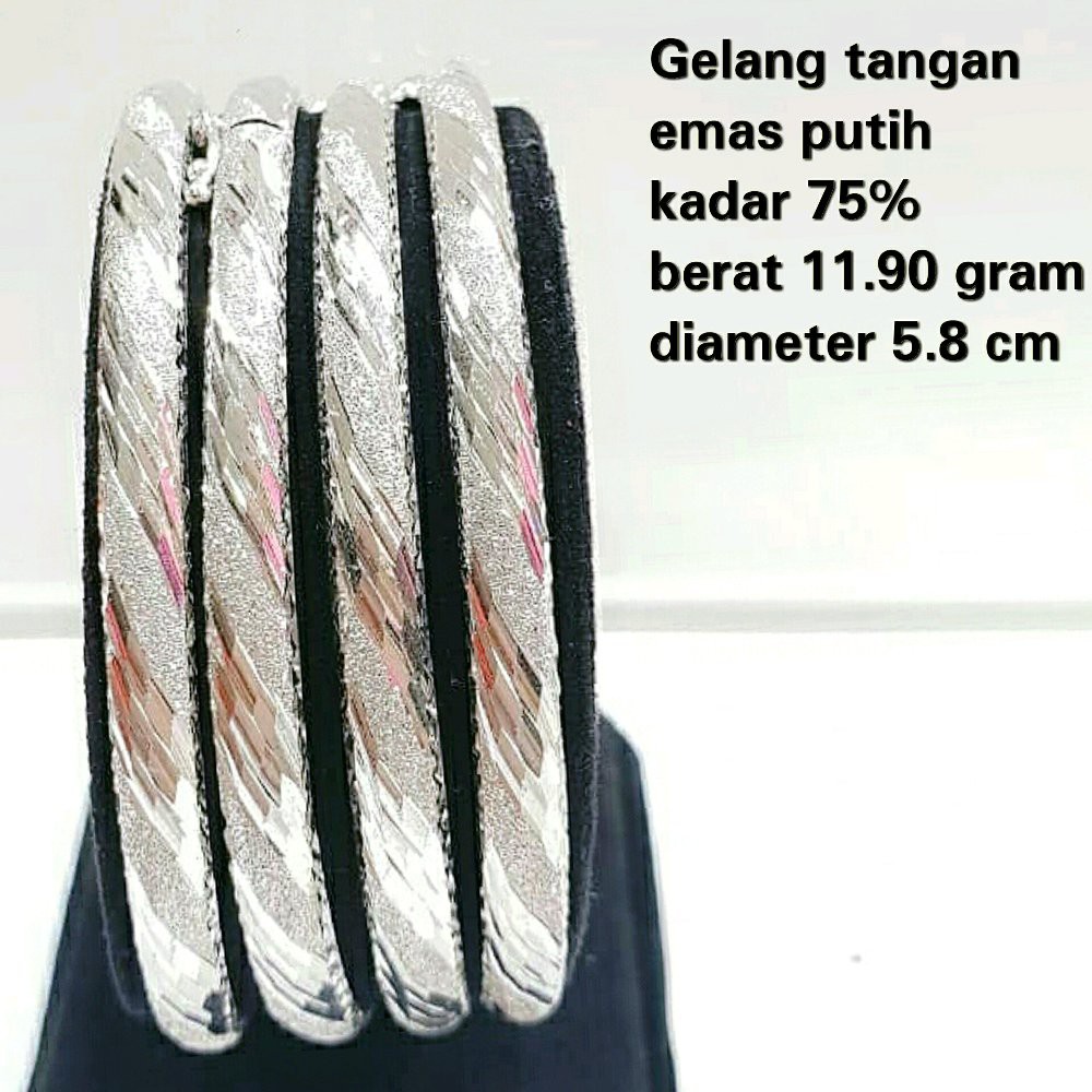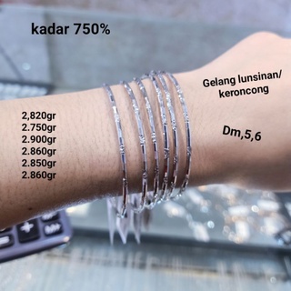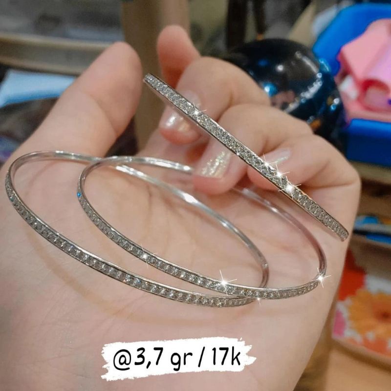 Gelang bulat emas putih kadar 750 berat 4.8 gram diameter 5.5cm dan 5.6cm model keroncong isi 3 buah