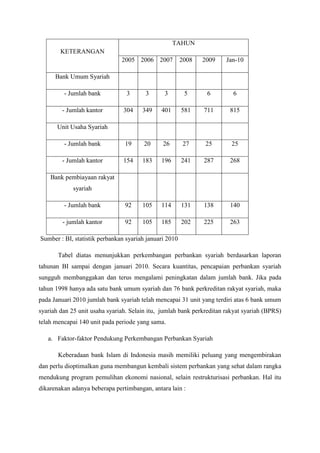 DATA KINERJA BANK SYARIAH 5 TAHUN TERAKHIR - pipitnurfitasari Jumlah Bank dan Jaringan kantor ( KP, KC, KCP, KC) : Pada 5 tahun terakhir bank syariah terus berkembang di Indonesia hal ini terlihat dari perkembnag bank syariah, baik bank yang berlatar belakang syariah seperti ( bank Muamalat ) maupun bank konvensional yang melebarkan sayapnya di bidang syariah seperti bank bri syariah dan lain-lain