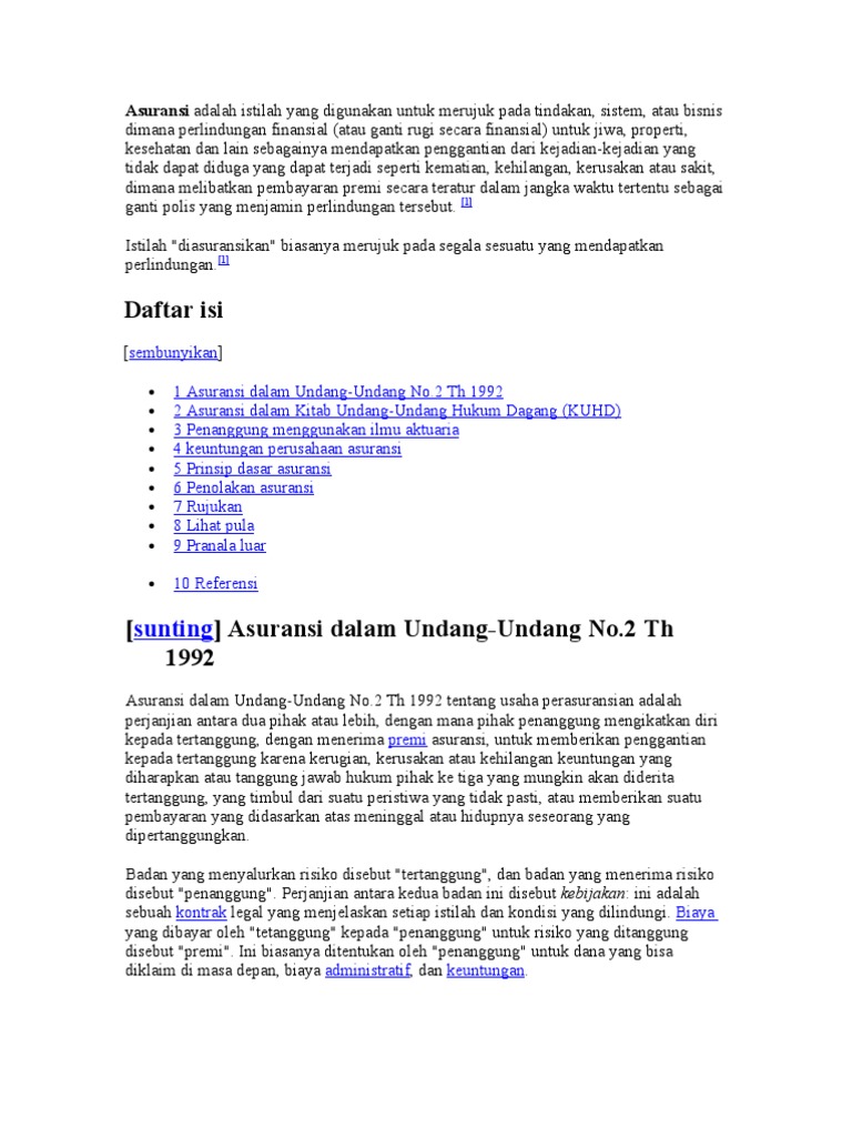 Essential 25000 English-Indonesian Law Dictionary Nam H Nguyen · 201811994 insurance insurance is a contract of asuransi asuransiadalah kontrak ... yang disebut perusahaan asuransi, menyanggupi untuk mengganti kerugian yang ...
