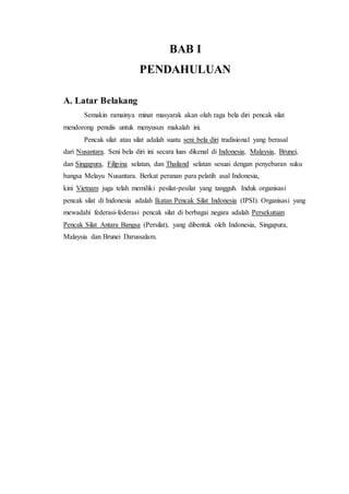 CONTOH PROPOSAL PERMOHONAN BANTUAN DANA ... Pencak Silat merupakan budaya asli bangsa Indonesia yang telah berkembang pesat baik di dalam negeri maupun di luar negeri. Sebagai pewaris budaya bangsa ...