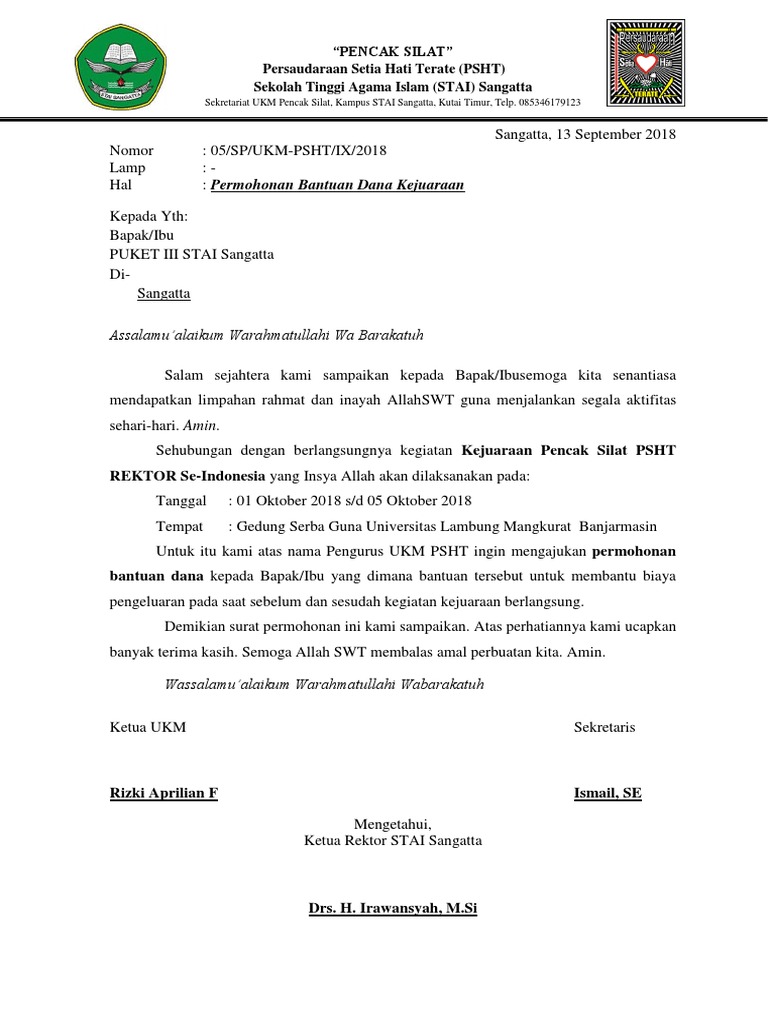 Contoh Proposal Pengajuan Alat Pencak Silat Psht Berikut yang dapat admin bagikan terkait contoh proposal pengajuan alat pencak silat psht. Admin Berbagi Contoh Proposal 2019 juga mengumpulkan gambar-gambar lainnya terkait contoh proposal pengajuan alat pencak silat psht dibawah ini.