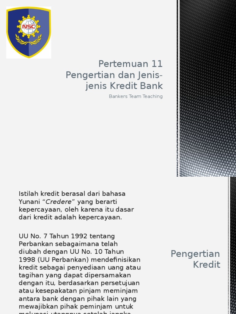 Jenis jenis kredit bank. id.wikipedia.org › wiki › BankBank - Wikipedia bahasa Indonesia, ensiklopedia bebas Bank syariah: jenis bank yang aktivitasnya didasarkan pada prinsip dan syariat agama Islam. Dalam hal ini, bank syariah menggunakan prinsip bagi hasil sebagai keuntungan dan menghindari riba. Berdasarkan cakupan operasional. Berdasarkan jenis operasionalnya bank dibedakan menjadi bank devisa dan non devisa. Jenis-Jenis Bank di Indonesia - Status, Fungsi, dan ... Jenis-jenis bank di Indonesia terbagi berdasarkan status, yaitu bank devisa dan nondevisa. Jenis bank berdasarkan fungsi, yaitu bank sentral dan bank umum. Berdasarkan kepemilikan, yaitu bank pemerintah, bank swasta, bank asing, bank campuran, dan bank pembangunan daerah. Berdasarkan prinsip: syariah dan konvensional. (DOC) Jenis-jenis Kredit Bank | Meisya Andriani Lubis ... Jenis Kredit Berdasarkan Jangka Waktu - Jangka Pendek, apabila tenggang waktu yang diberikan bank kepada nasabahnya untuk melunasi pinjaman tidak lebih dari satu tahun. Contoh : Kredit modal kerja perdagangan, industri dan sektor lainnya. Yuk, Kenal Lebih Dekat dengan Jenis-jenis Kredit Bank ... Umumnya, kredit jenis ini digunakan untuk pembiayaan usaha industri, pembelian rumah, atau kendaraan. KREDIT BERDASARKAN SEKTOR EKONOMI Berdasarkan sektor ekonomi, jenis-jenis kredit bank dikelompokkan ke dalam beberapa jenis, seperti: - Kredit pertanian - Kredit perindustrian - Kredit pertambangan - Kredit profesi - Kredit perumahan